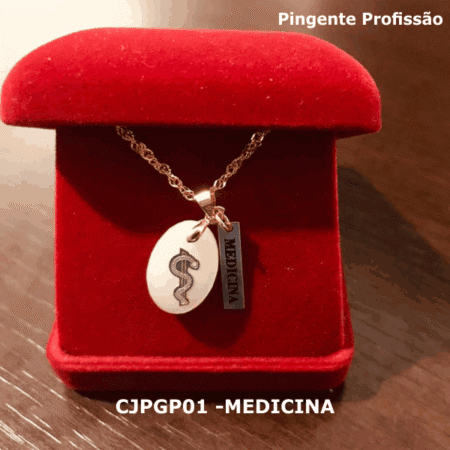 Conjunto Cordão e Pingente de Profissão Medicina com Resina CJPGP01