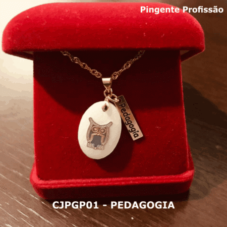 Conjunto Cordão e Pingente de Profissão Pedagogia com Resina